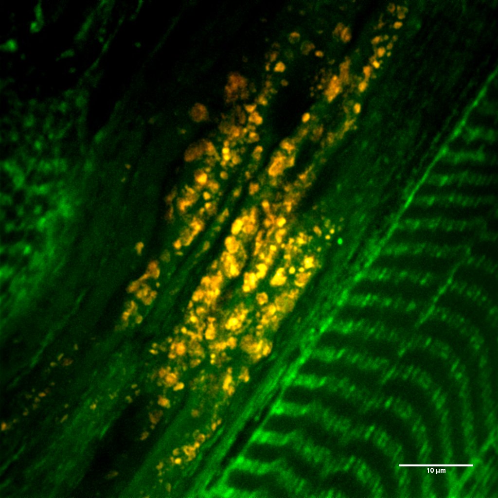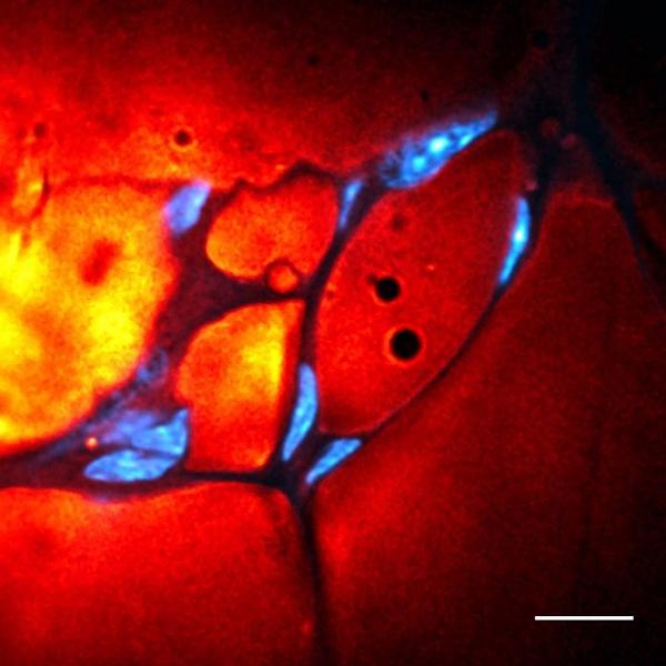 Mit dem Coherent Anti-Stokes Raman Scattering als Kontrastverfahren lassen sich besonders gut Fettspeicher oder die Zellmatrix im Gewebe abbilden.